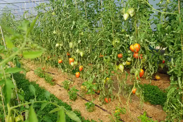 Im geschützten Anbau konnten wir durch Mulch den Wasserverbrauch deutlich reduzieren.